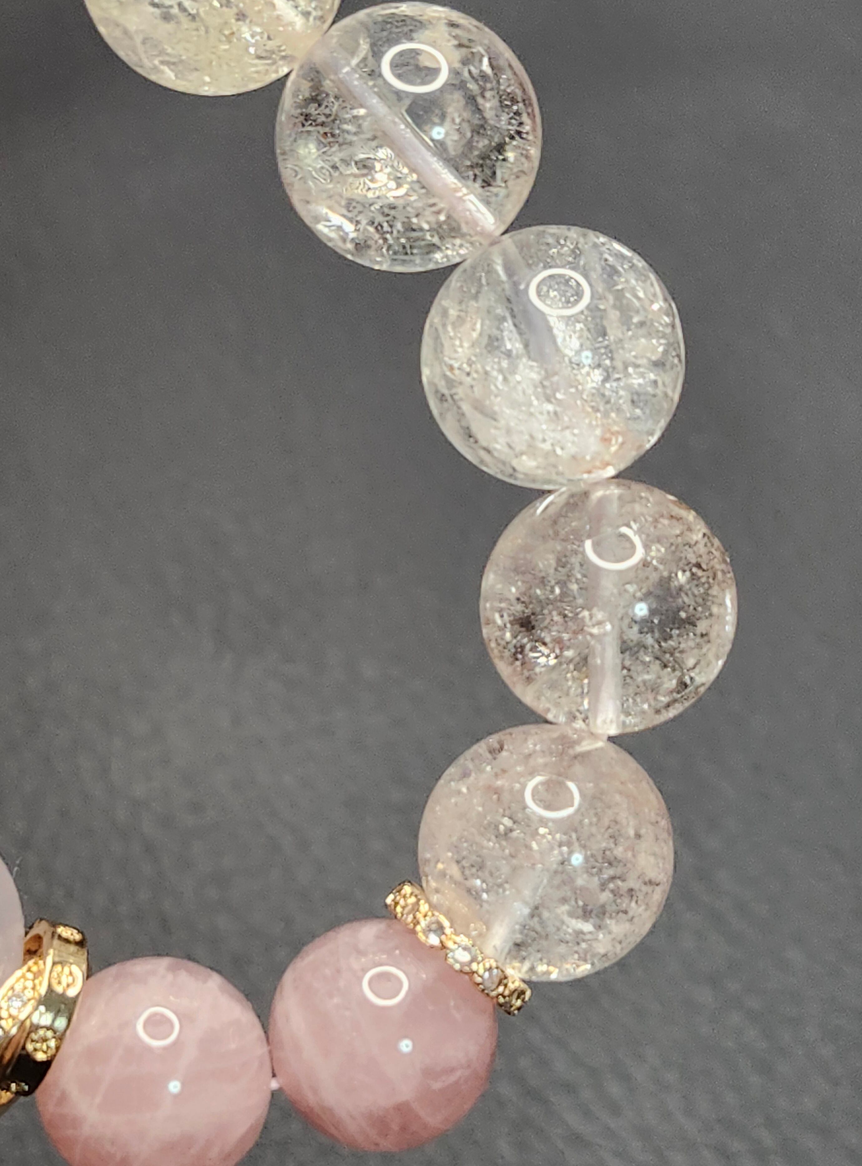 【いちごミルク】ローズクォーツ×マダガスカル産ローズクォーツ×アイリスクォーツ×セリサイトインクォーツ