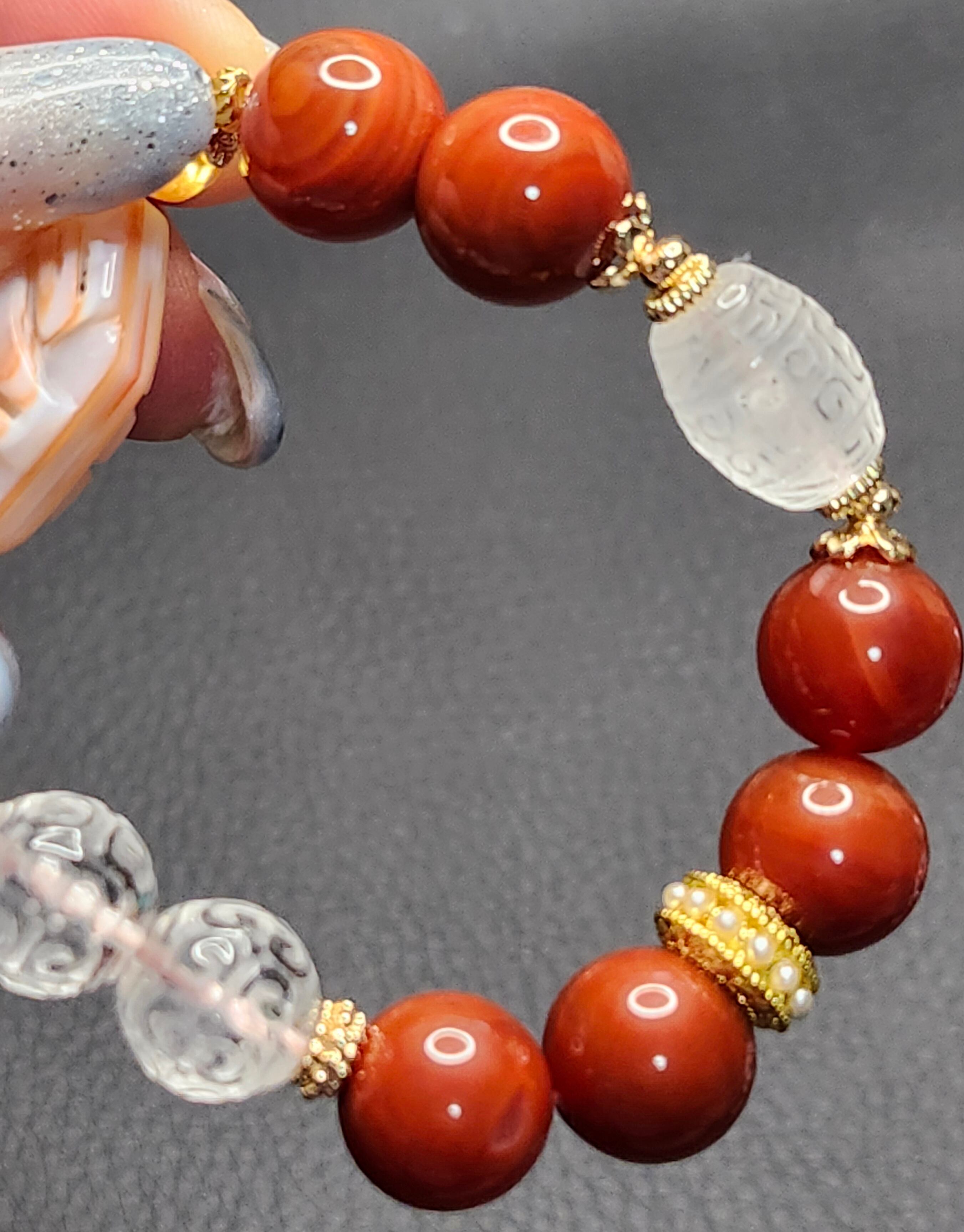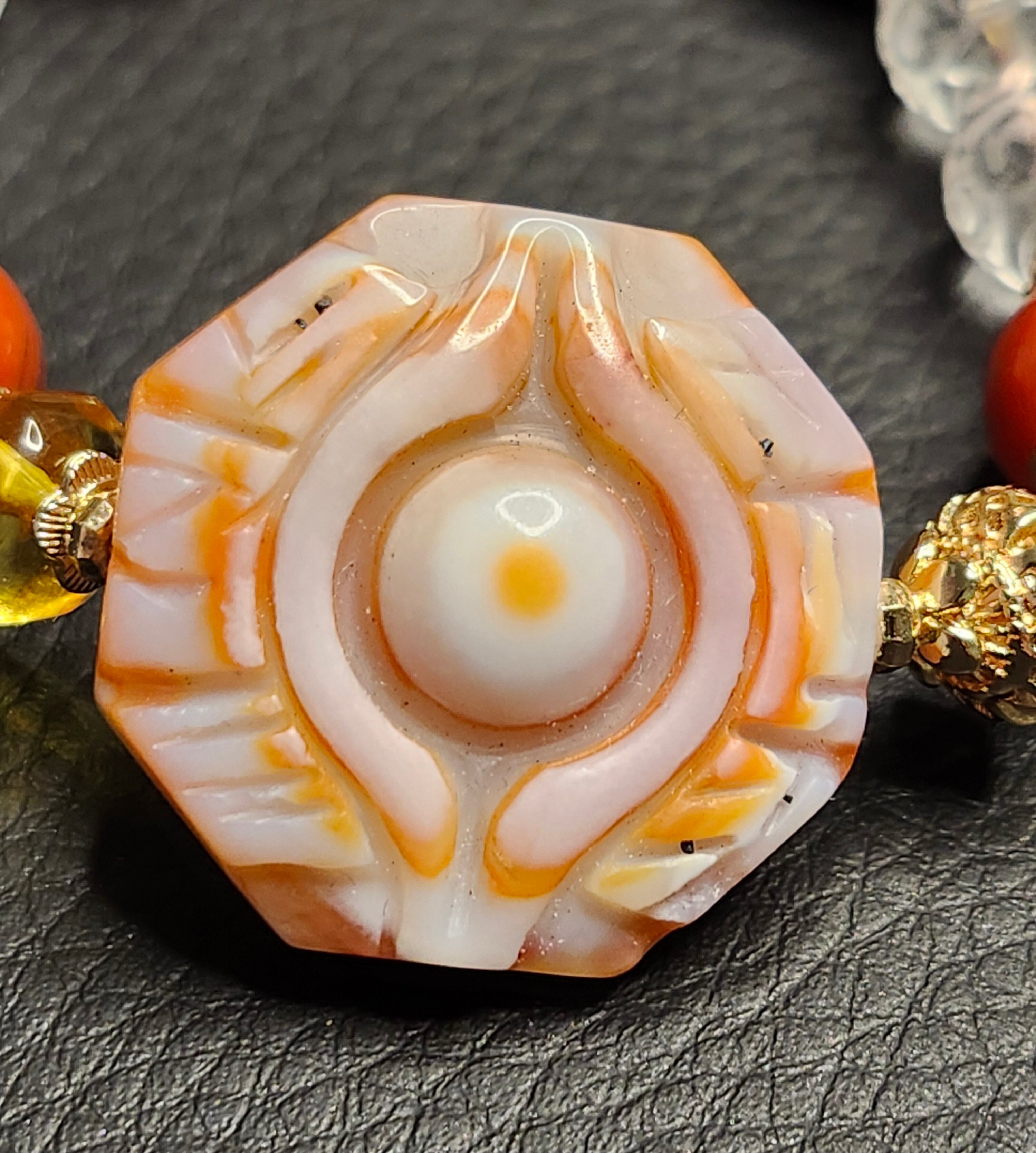 羊眼天珠(天眼石) 南紅瑪瑙 水晶回紋珠