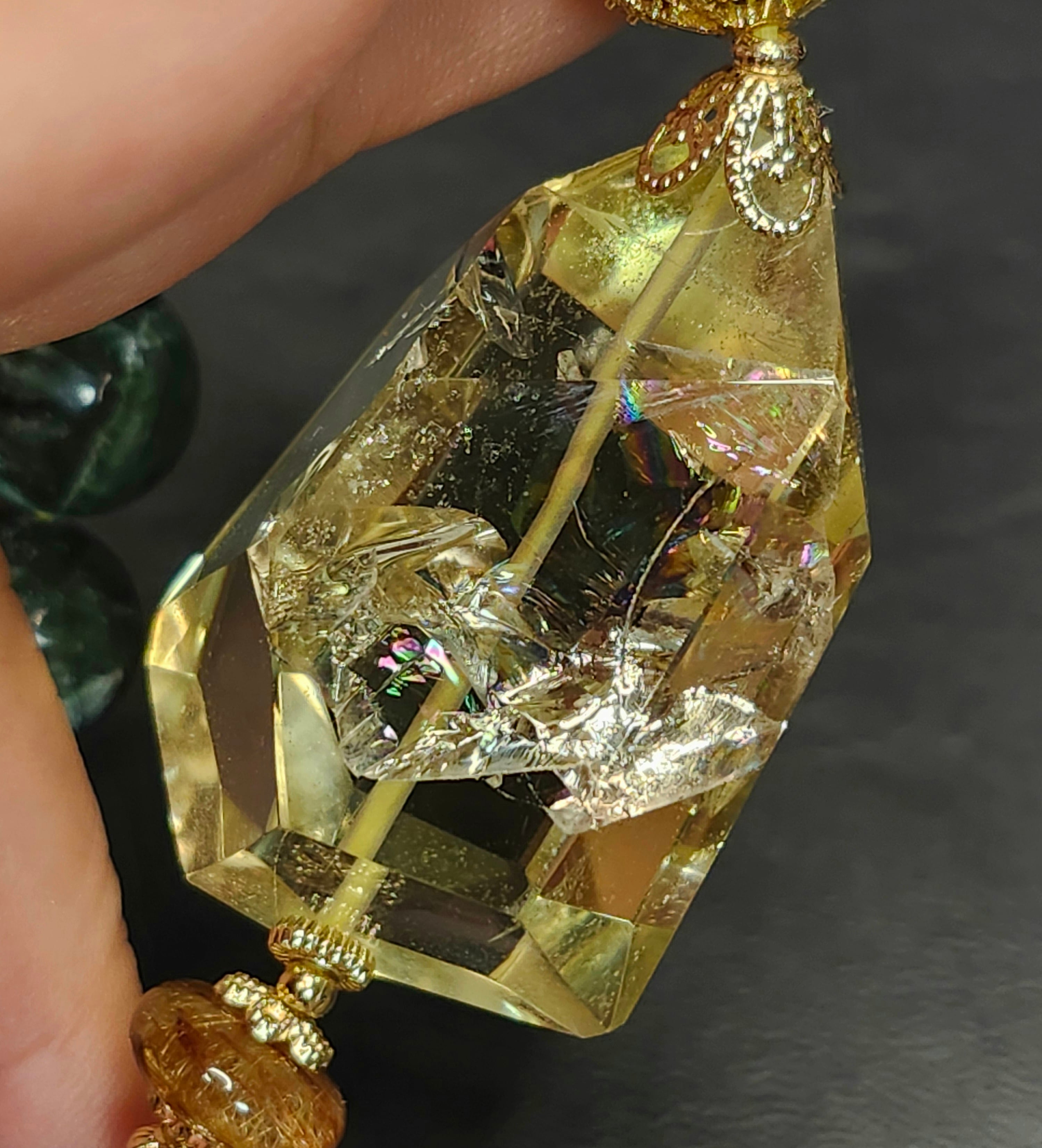 ★虹がきらめくシトリンの輝きに、天使の羽のセラフィナイト、そして魂を導くユーディアライト。三つの波動が重なり…
